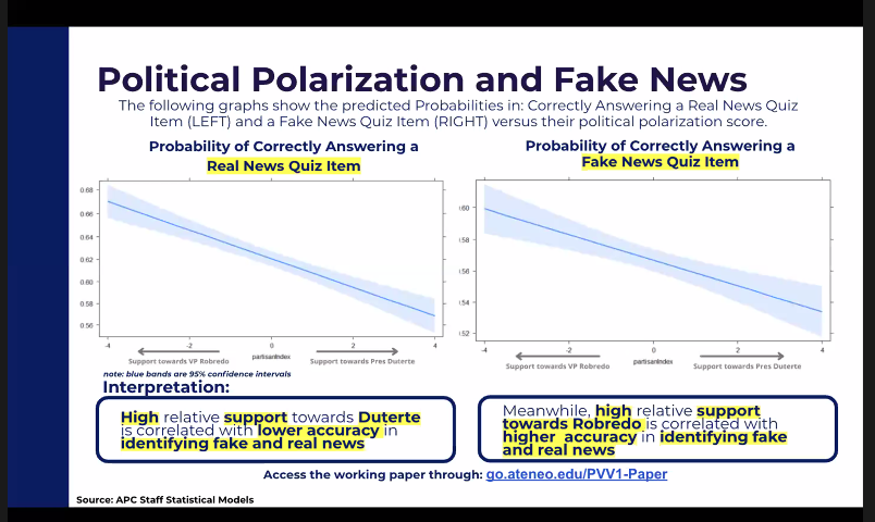 @newsdwight The Ateneo School of Government's findings reveal that those with high relative support towards President Duterte "have lower accuracy in identifying fake and real news." | via @newsdwight#PHVote#WeDecide
