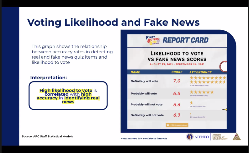 @newsdwight The group's findings show that those who are highly inclined to vote in the 2022 polls have high accuracy in identifying real news. | via @newsdwight#PHVote#WeDecide
