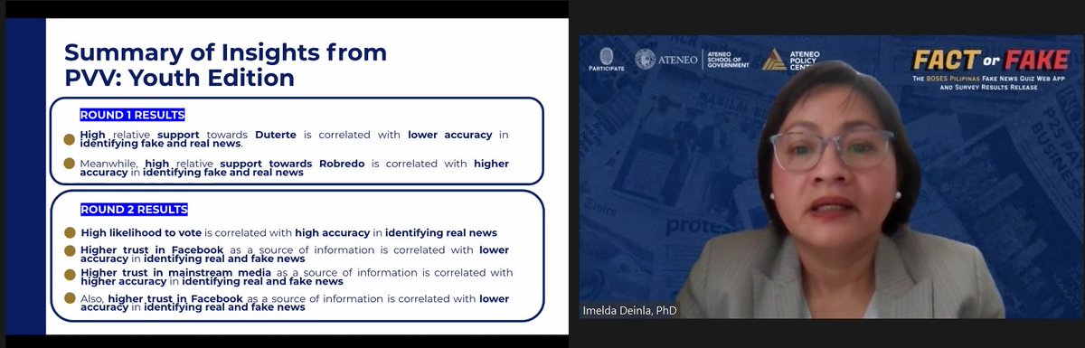 NOW: The Ateneo School of Government, through BOSES Pilipinas and Participate, releases the results of a youth survey on fake news. | via @newsdwight#PHVote#WeDecide
