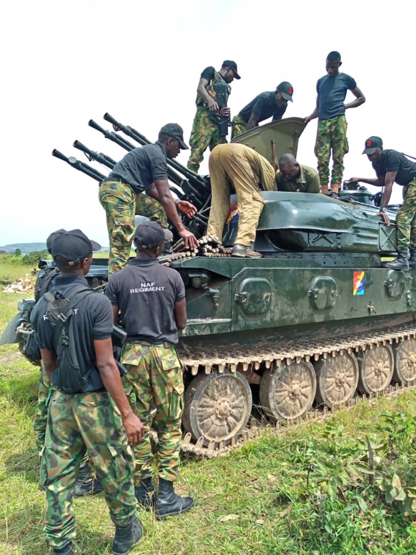 ZSU 23-4 "Shilka". The only mobile air defence artillery in the Nigeiran military is over due for upgrade. The "Shilka" is a Soviet SPAAG produced in 1965. The armament consists of four 23mm cannon with a vertically moving breechblock locking system.