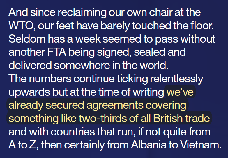 1. Actually, 35 weeks passed between the UK taking its seat at the WTO on 4/2/20 and the next FTA being signed – with Ukraine – on 8/10/20, part of a last-minute rush that, amongst other things, means the Ukraine deal now needs to be re-written to correct the legal errors made.