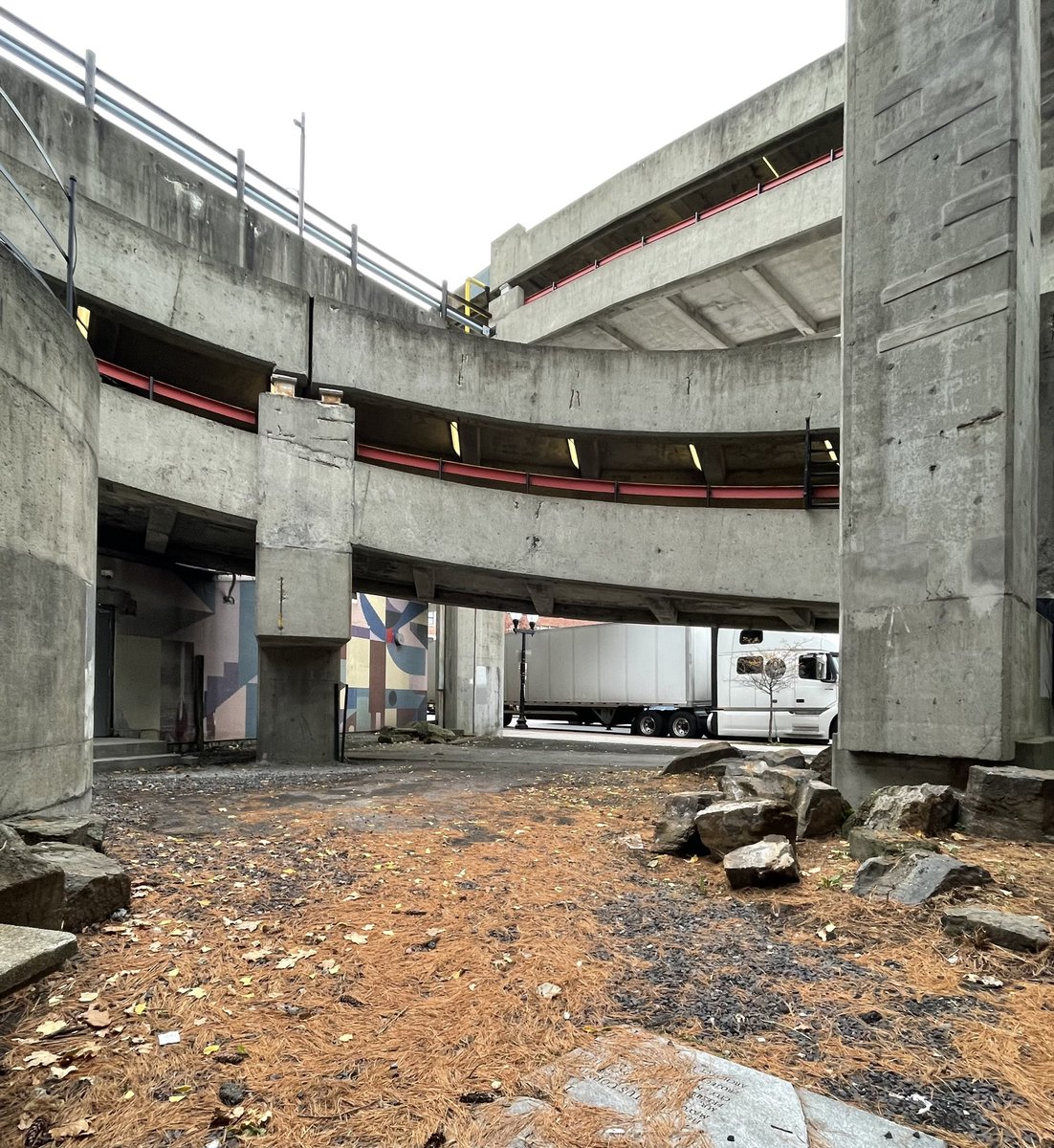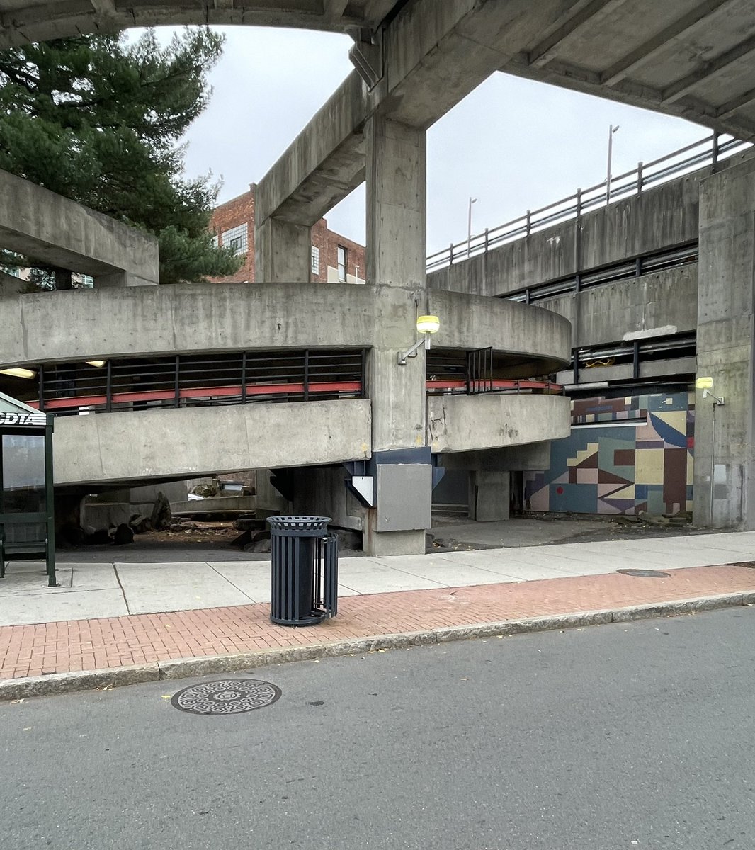 Wait. Is that a bench in the center of that cement parking behemoth. It is. Fuckin sittin there. No way I am not