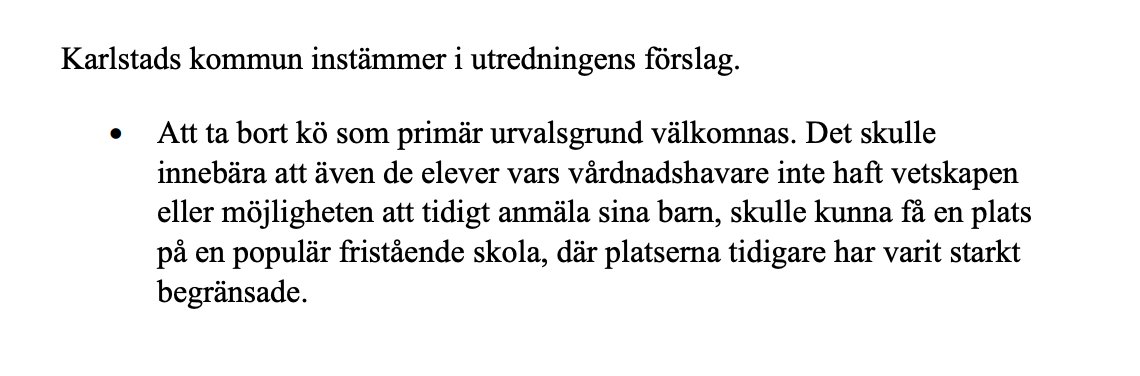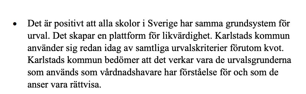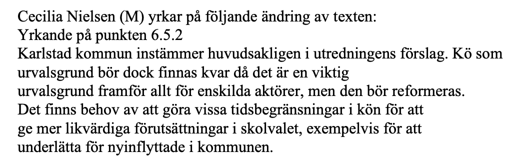 ändras alltså till att Karlstads kommun inte ska tycka att man ska ta bort kötid eftersom inte friskolor vill ta bort kötid.