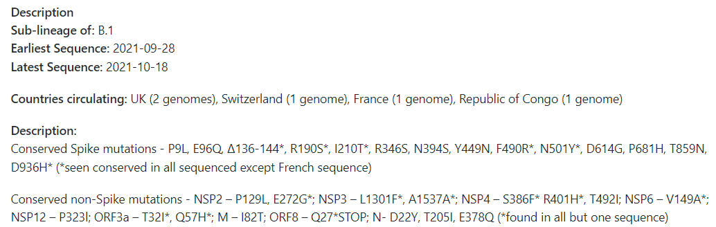 Uma nova variante (B.1.X ou B.1.640) foi detectada em 24 pessoas infectadas em uma escola francesa, em Out/21. A #Delta segue sendo a variante de predominância, e a B.1.640 está na esfera de monitoramento.