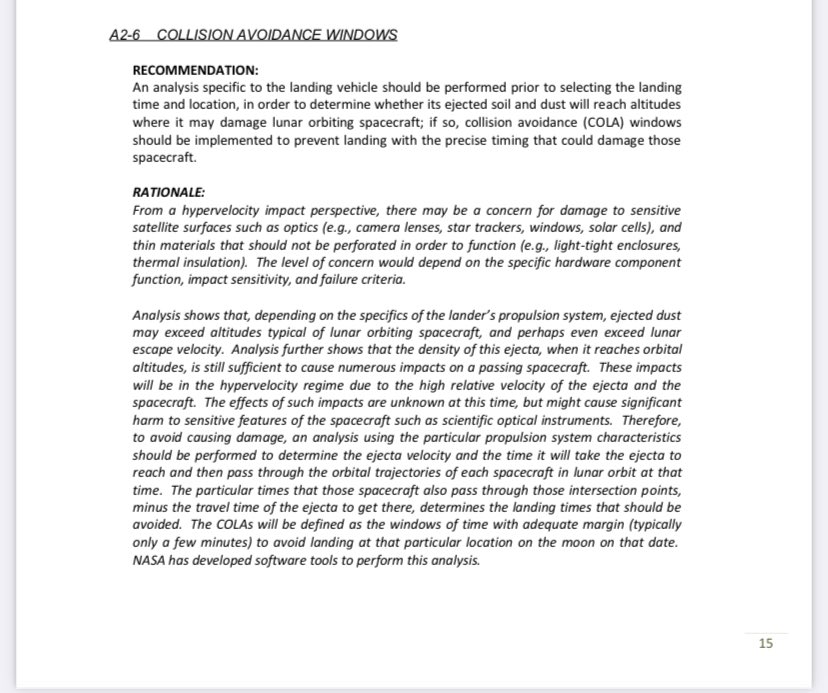 5/ This is why we made a rule about coordinating your lunar landings with NASA mission control to ensure you don’t land at just the wrong time to sandblast another spacecraft in lunar orbit. We put the rule into this document: nasa.gov/directorates/h…