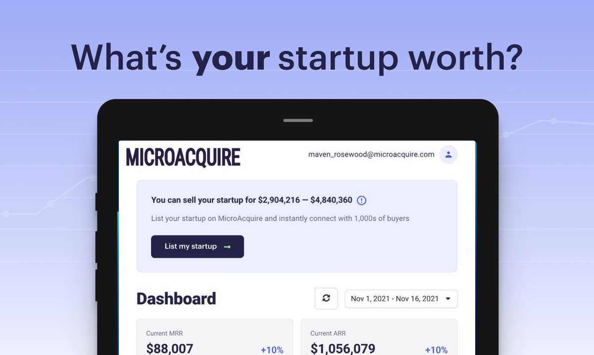 MicroMRR syncs with your Stripe account and anonymized acquisition data on @microacquire. You then receive meaningful, actionable insights into your startup’s valuation and performance.