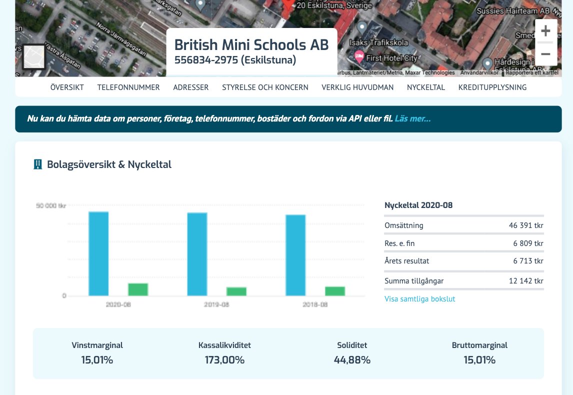 British Schools i Eskilstuna är ett annat exempel. Marginal på runt 15 % per år och 37 miljoner på banken...