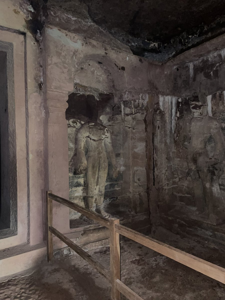Later @ASIGoI worked on restoration of site, paintings and statues. Mr. Katare and team worked on these under leadership of Mr K S Rana over a period of 17 years. These restored and recreated statues and painting are stored in near by museum. #BaghCaves