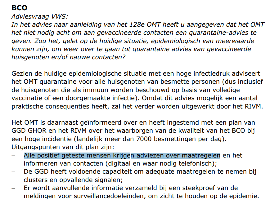 Na 600 dagen pandemie komen we niet verder dan mensen die positief testen... advies geven. En hopen dat het goed gaat. Je zou wat strenger kunnen zijn,
