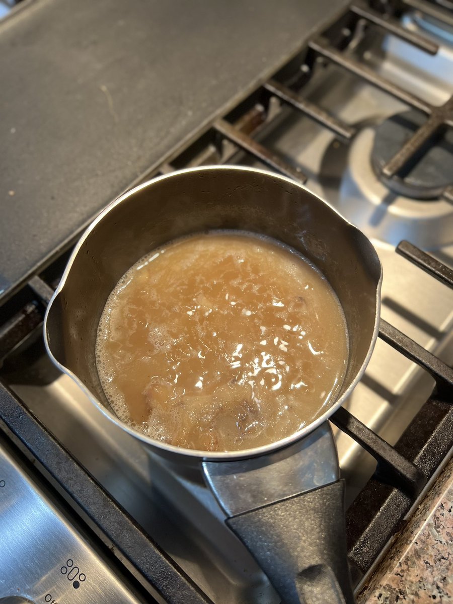 Low boil, whisk, sip more wine. Tiny simmering saucepan of broth, bouillon cube and 1 tbsp b