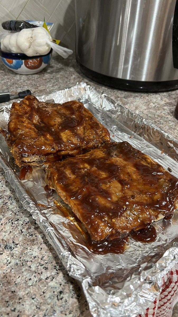 Wire rack. Then ribs stacked on top. Cooking for uh… 30 minutes? I’ll report back then.