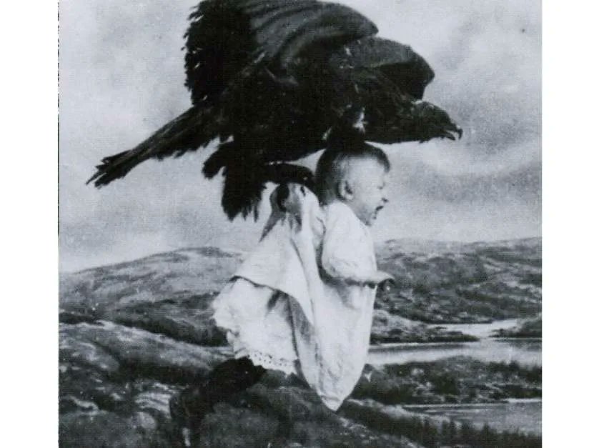 No entiendo quién querría que su bebé saliera en una imagen con un cuervo arrastrándole por los aires😐