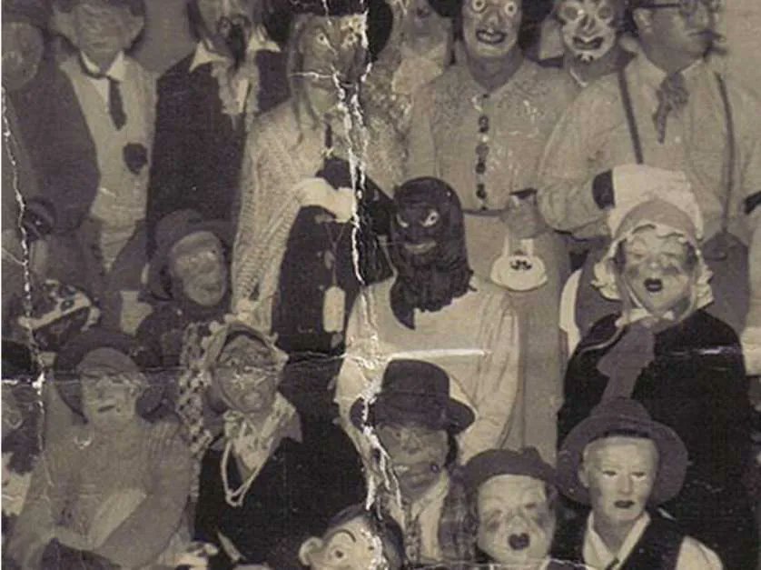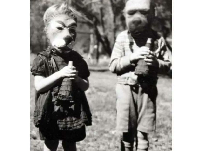 El mundo de los disfraces antiguos para Halloween es perturbador. La ausencia de otro elemento de disfraz que no sea una máscara, confiere un halo tétrico a las imágenes.