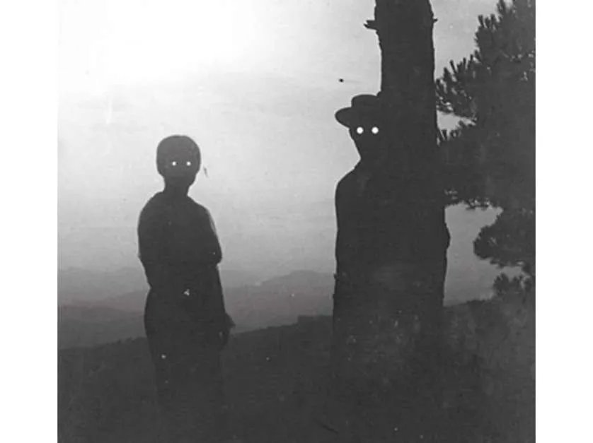 Los ojos extremadamente brillantes, que ya hemos visto en otras imágenes, se producen en realidad por lo rudimentario de las cámaras de la época. Sin embargo, resultan perturbadores.