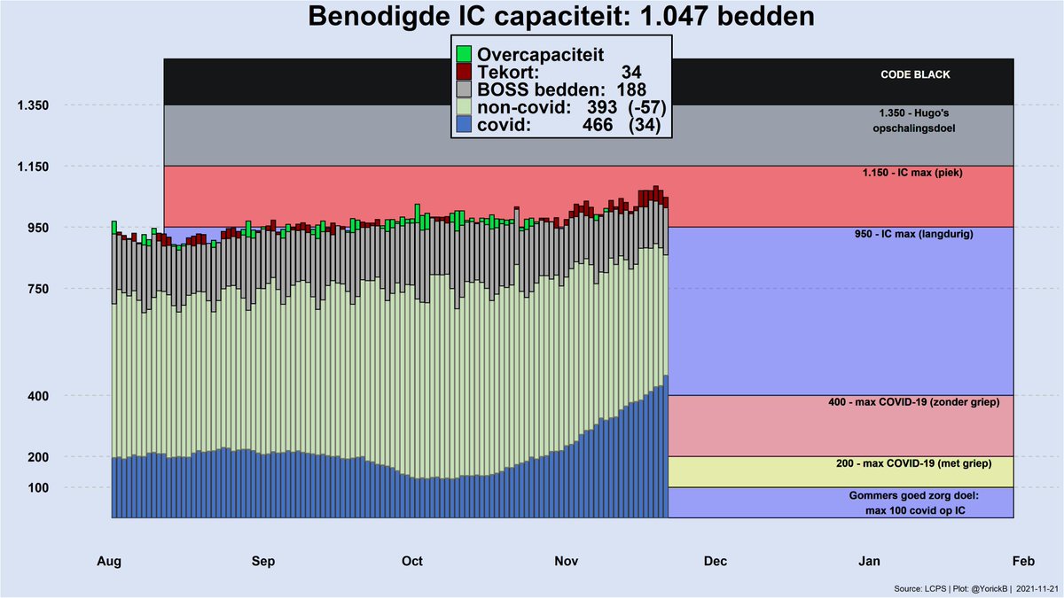 🔴34 IC-bedden tekort (gaat af van de BOSS bedden, die eigenlijk vrij moeten blijven)