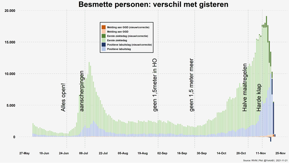 - nieuwe gevallen (laatste 2 dagen worden nog aangevuld)