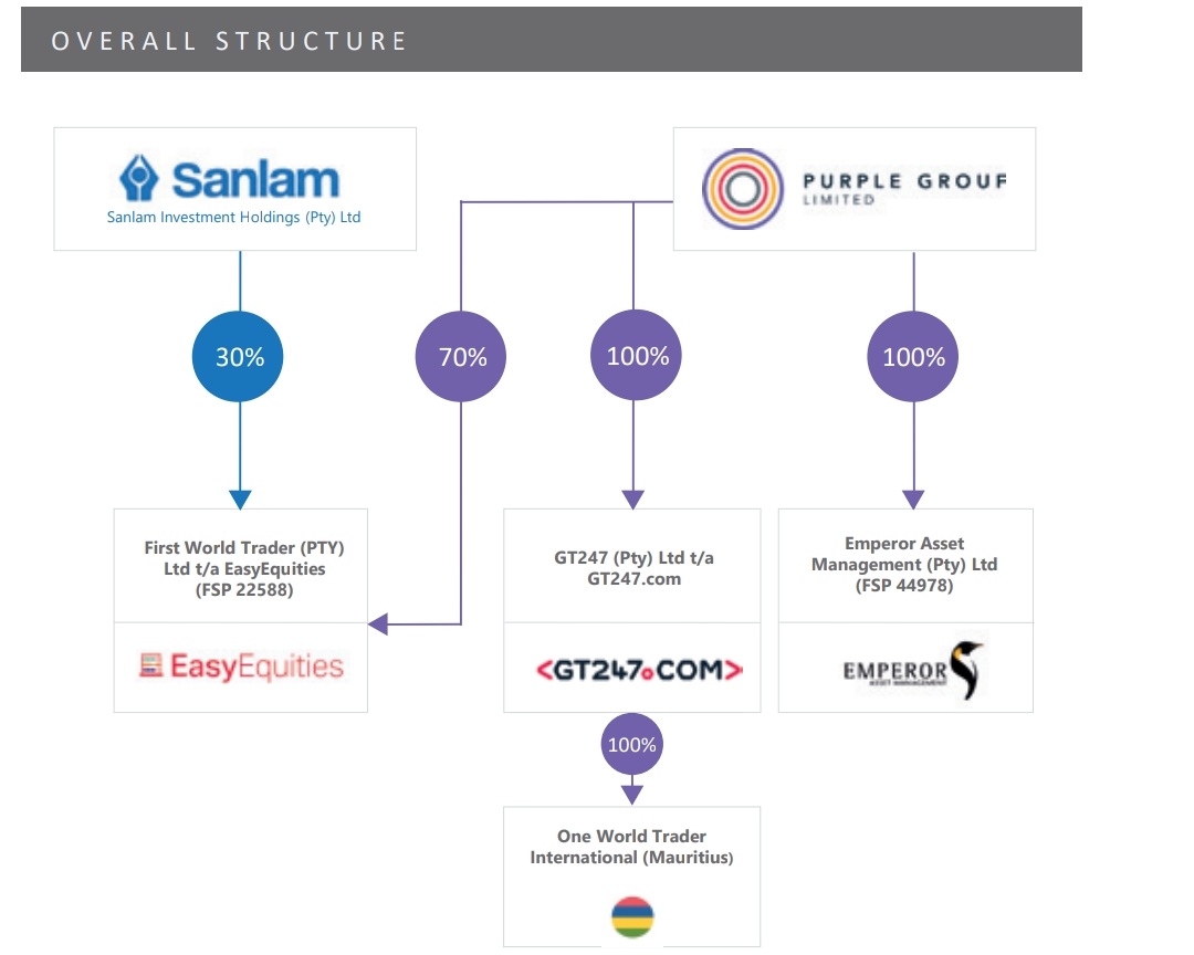 Purple Group owns 70% of EasyEquities SA and Sanlam