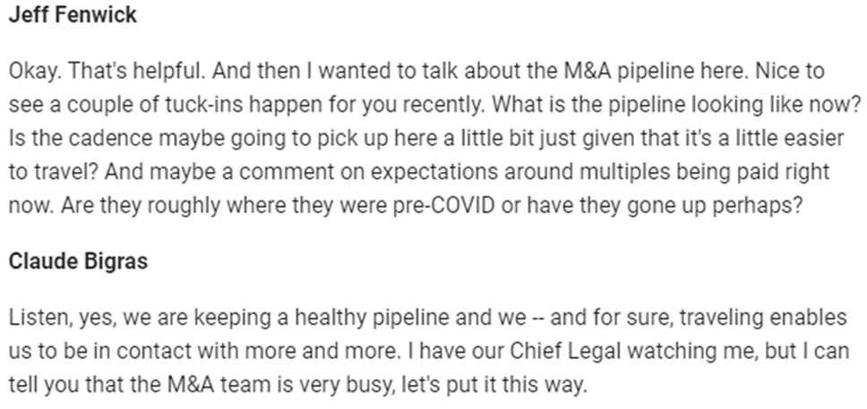 ➡️ En reciente conference call, afirman "que el equipo de M&A está muy ocupado, por decirlo de alguna manera"✅