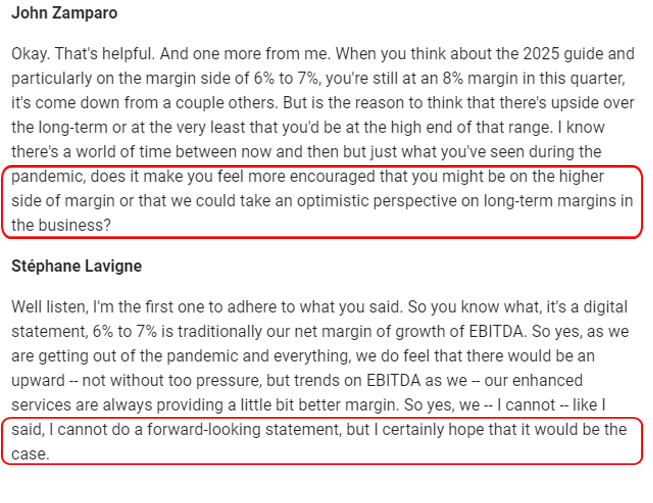 Y margenes EBITDA ajustados entre 6-7% (no descartan más altos en la reciente conference call)