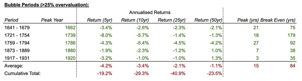8/ If you bought around the peak, the average break-even time (nominal) was 84 years. Buying around 1739 took 179 years to break even.