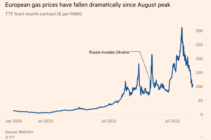 De hecho, Europa ha llegado a almacenar tanto gas que cargamentos de GNL han tenido que esperar en los puertos para ser descargados porque no podíamos recibir más y los precios han descendido significativamente desde el pico de agosto.