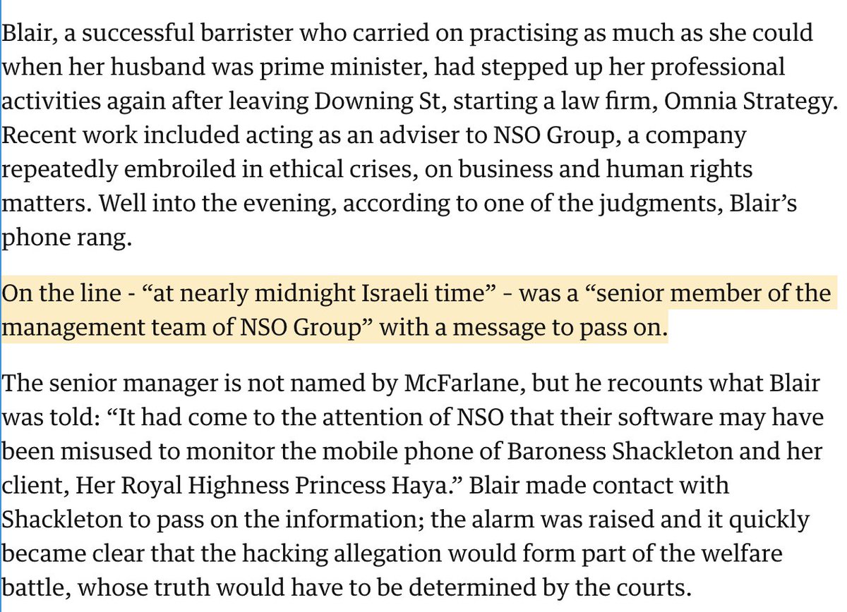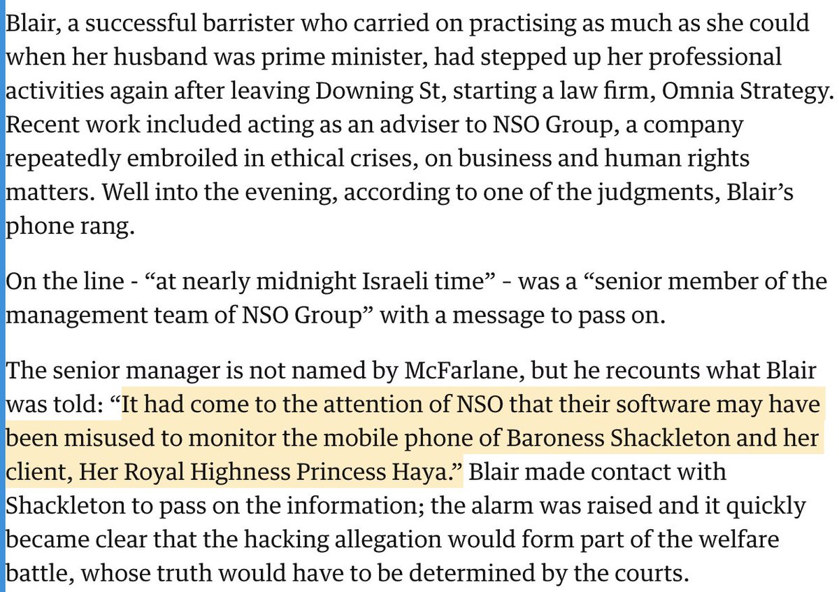 BREAKING: UK High Court finds Emir of Dubai authorized hacking of his ex-wife Princess Haya, her child custody lawyers & more with NSO's #Pegasus spyware.