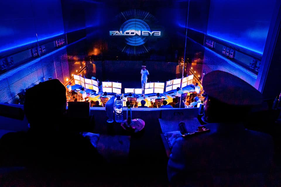 Falcon Eye Maritime Surveillance System. Housed in eight C3I underground Command and Control Centers, with UAV's, surveillance aircraft, ground based sensors and one optical satellite slaved to it. It is the most sophsiticated maritime surveillance system in Africa.