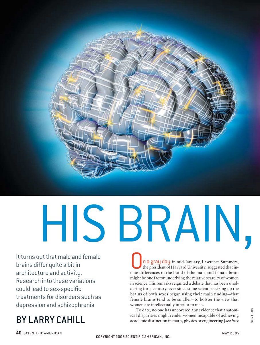 Un muy interesante artículo a todo este respecto es "His brain, her brain" de Larry Cahill, publicado en Scientific American.