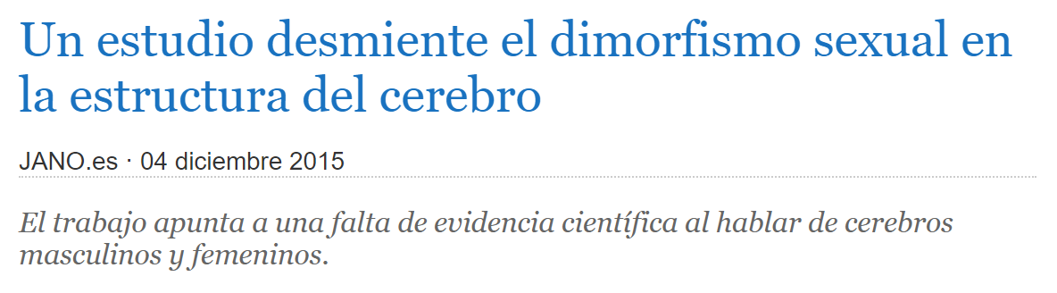 Pero veamos qué dice el estudio de Eliot et. al., cuyo enlace compartimos aquí. La conclusión (pseudocientífica) del estudio metaanalítico es que el cerebro humano no es sexualmente dimórfico.