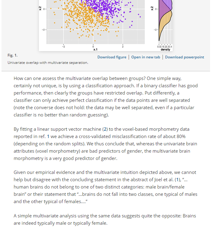 Finalmente, esos métodos de análisis estadístico multivariado se llevaron adelante en un estudio con una muestra independiente; demostrando que, con buena ciencia y buenas matemáticas, estas diferencias sexuales cerebrales son perfectamente detectables. researchgate.net/publication/29…