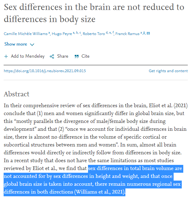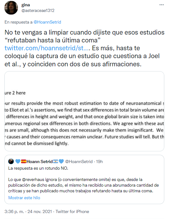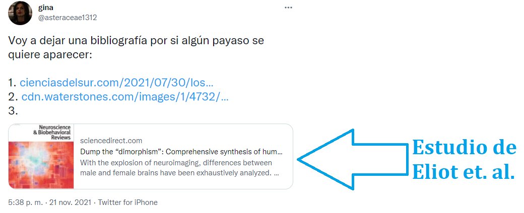 Y esto es lo más importante: el estudio al que sí se responde en la captura de Gina es un estudio de Eliot et. al. que Gina pretendía usar como fuente para decir que las diferencias cerebrales no son "ni importantes ni significativas".