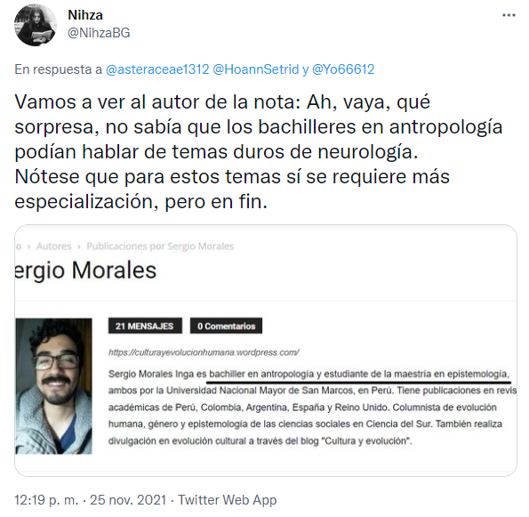 @asteraceae1312 insiste en que debemos leer el artículo periodístico y los datos sobre su autor. Resulta que no solamente se confirma que el artículo no es serio, sino que el autor no está formado en dichos temas.