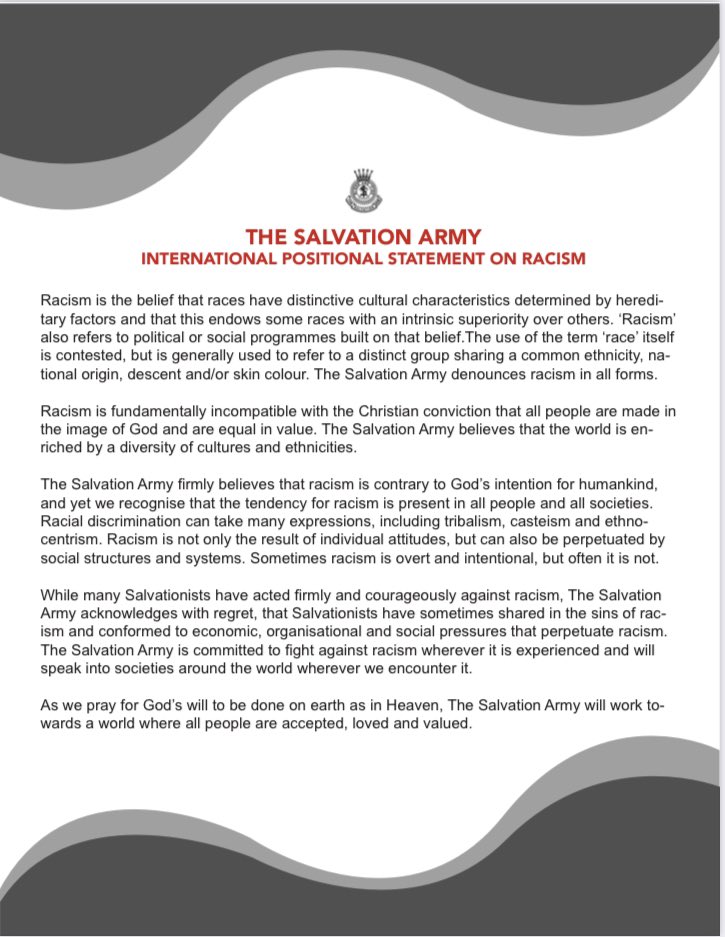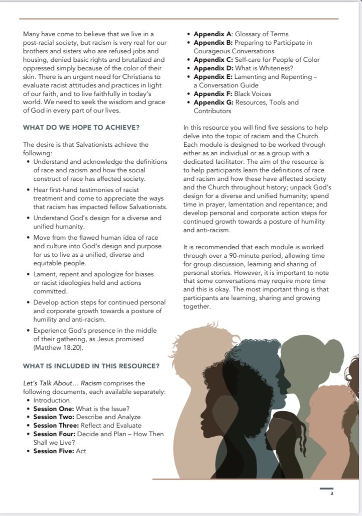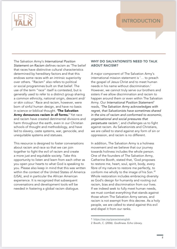 Salvation Army’s leadership created an “International Social Justice Commission” which developed & released a resource called “Let’s Talk About Racism” to educate white donors.
