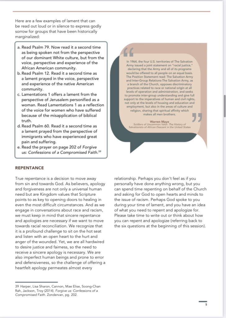 Page 4/67: “Lament, repent and apologize for biases or racist ideologies held and actions committed.”