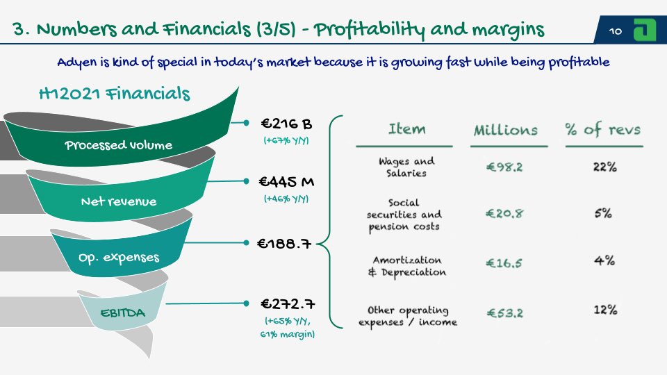 9/ Adyen is growing its top line fast while being profitable (61% EBITDA margin calculated over net revenue)