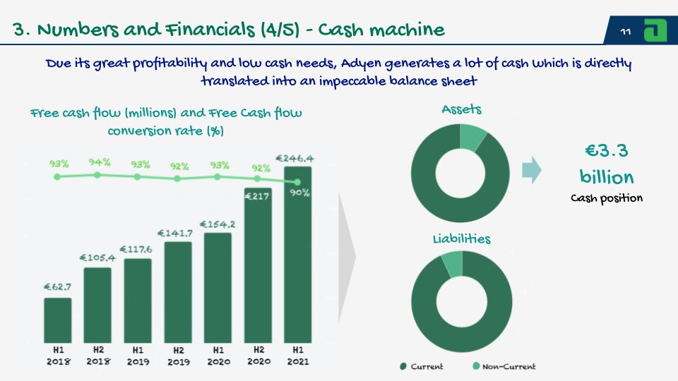 10/ Adyen is profitable on an accounting basis and has very low cash needs, combination which converts the company into a cash machine.