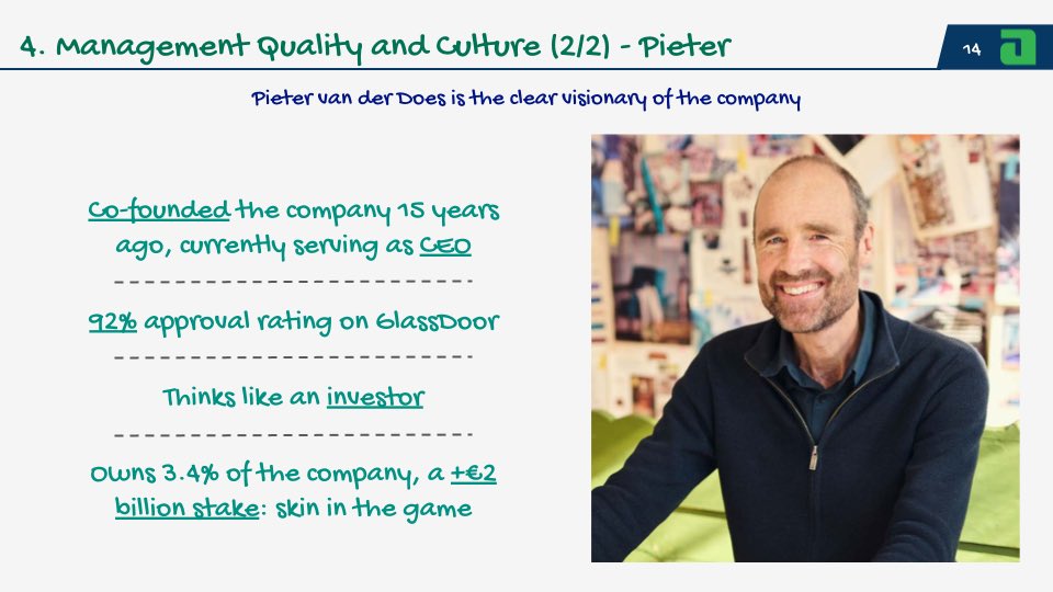 Pieter leads the company that he co-founded 15 years ago and in many ways thinks as just another Adyen shareholder. This might be due to his +€2 billion stake in the company
