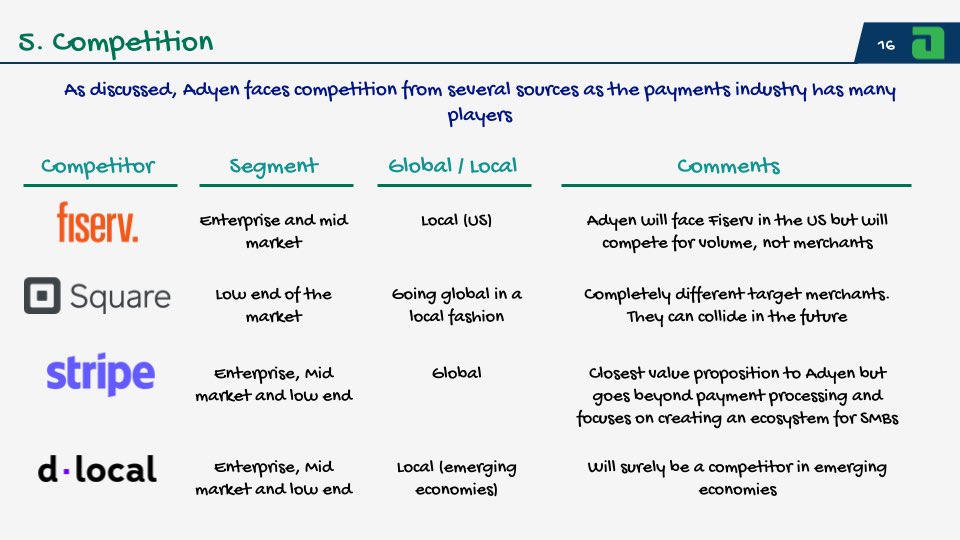 15/ In the slide below you can find some of Adyen’s competitors with some of my comments related to how the company competes against them
