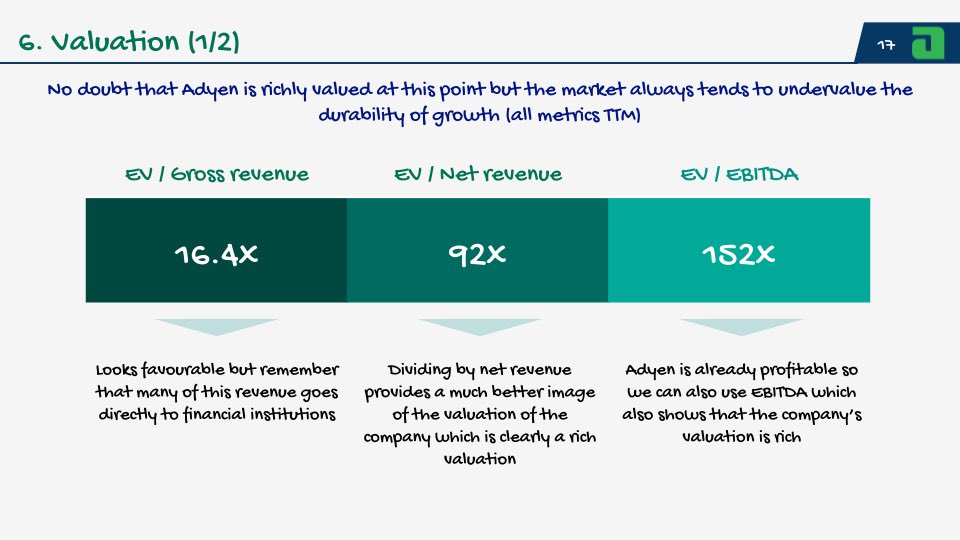16/ Adyen is richly valued, there is no doubt about this.