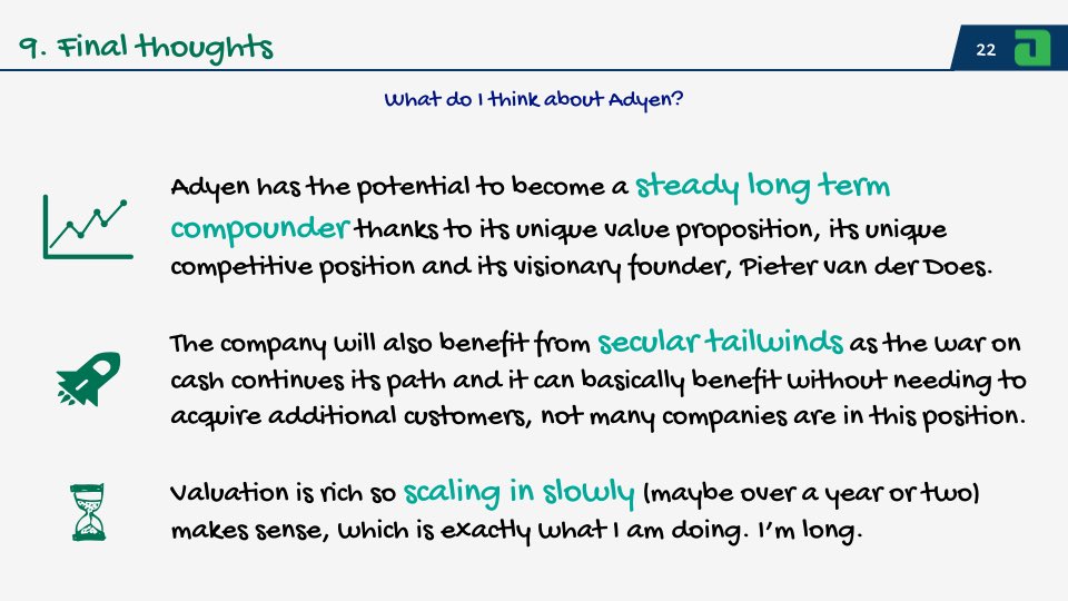 21/ My final thoughts on Adyen! I think that the company is a durability of growth story and we know that historically the market has not done a good job at pricing these types of companies