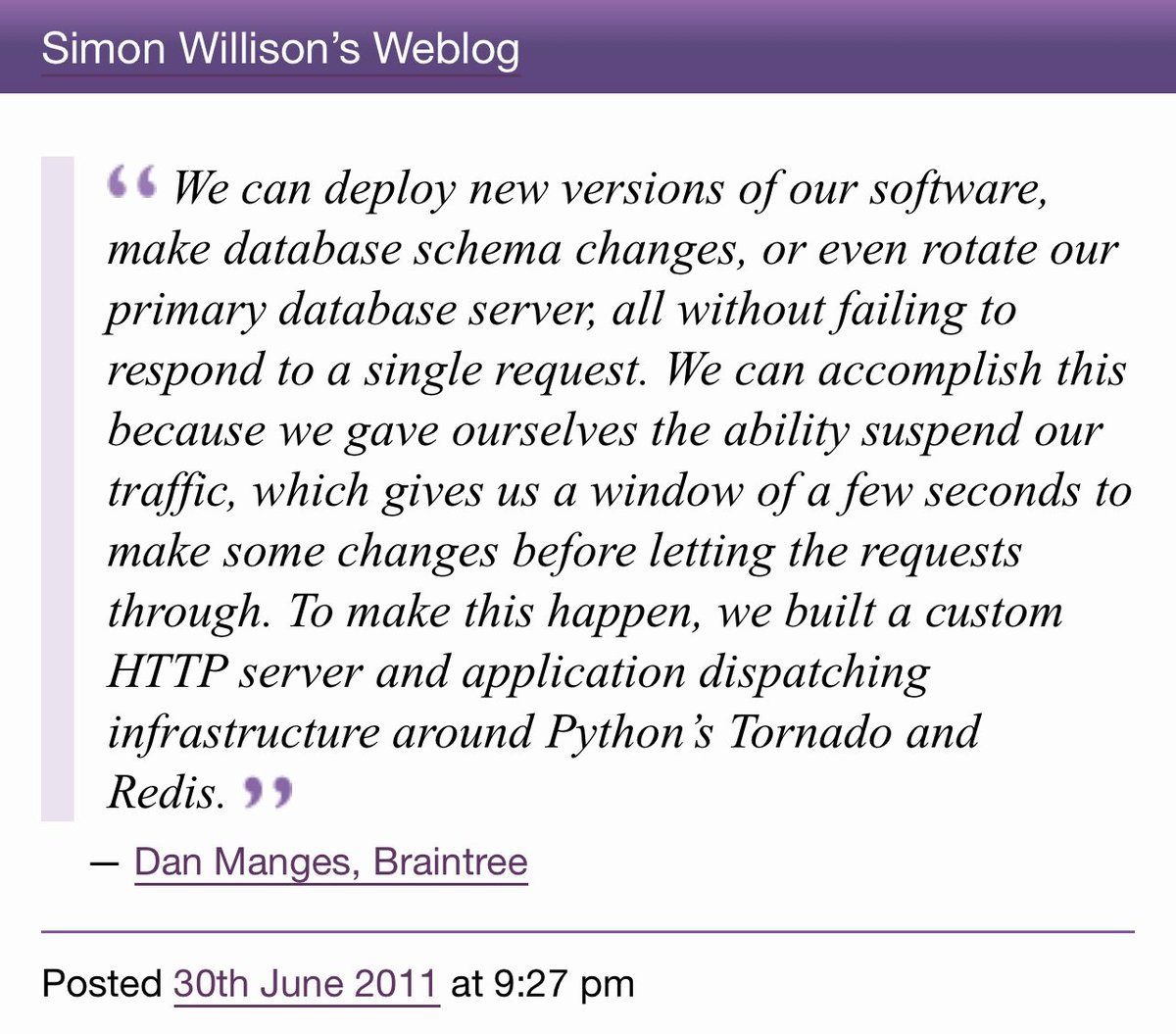 "In our use cases, we 'hold' users requests for less than 10 seconds while we do our database maintenance via mysql_role_swap. The user sees a single long request, and things carry right along."