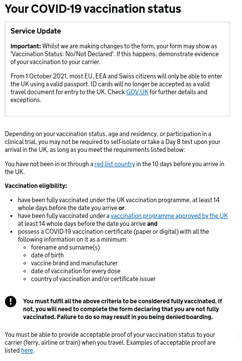 After entering your passport number/expiry, you'll then reach 'Your COVID-19 vaccination status'.