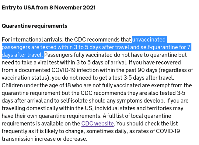 Gov.uk also refer to US unvaccinated travel below.