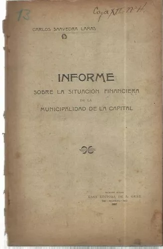 Saavedra Lamas obtuvo su titulo universitario en 1903 en la Facultad de Derecho de la Universidad de Buenos Aires, con medalla de oro; su tesis versó sobre “Régimen Municipal de la Capital” y recibió por ella el Premio Facultad. También por esos años comenzó su carrera política, ocupando posiciones públicas siendo muy joven. Fue Director de Crédito Público en 1906 y luego Secretario de la Municipalidad de la Ciudad de Buenos Aires, en 1907, durante la intendencia de Carlos Torcuato de Alvear.
