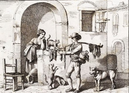 העדויות על אודות מאכילי חתולים מקצועיים (Carnicciari) ברומא, שבחלק מתיאורים נראים גם כמי שמכרו חתולים שלמים על כל צרה שלא תבוא, מגיעות עד מחצית המאה הקודמת,