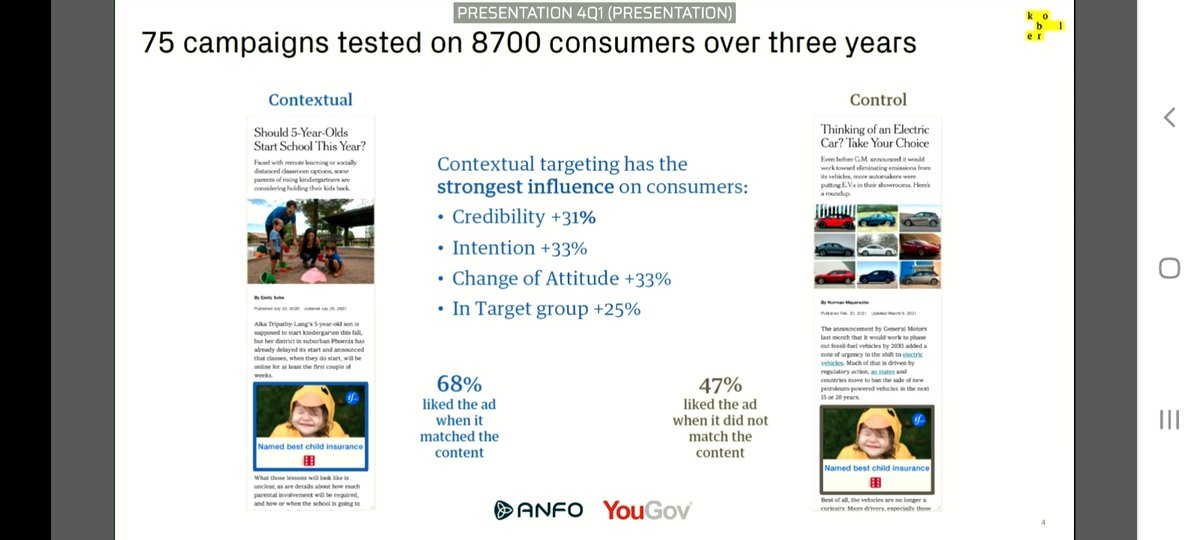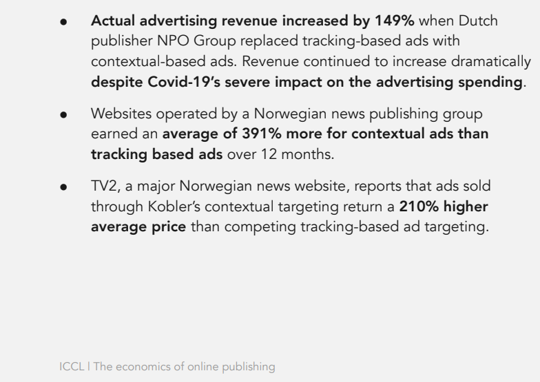 2) Banning surveillance advertising ≠ banning online advertising. 3) Advertising can still be relevant without surveillance, e.g. when targeted based on the content of a visited page. People actually prefer contextual advertising and believe it is more credible.@BuggeErik 3/8