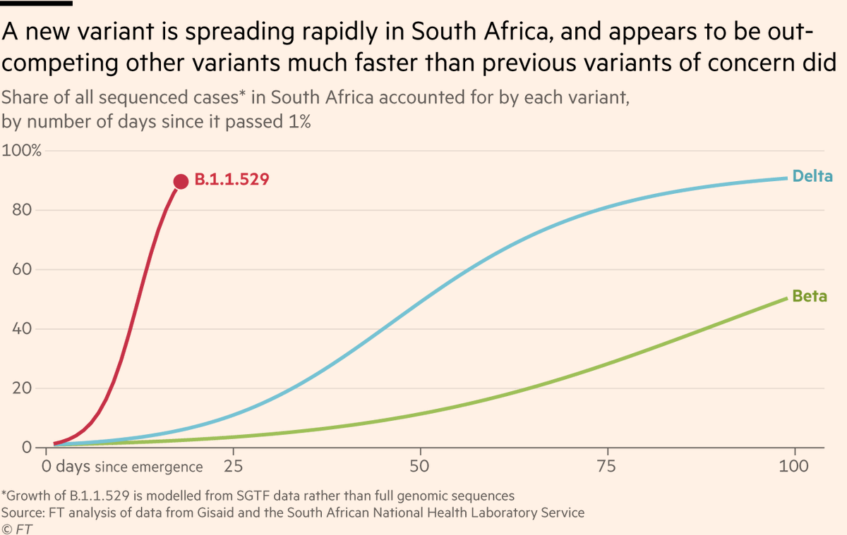 On the one hand, B.1.1.529 became the dominant variant in SA frighteningly quickly; on the other, it did so from a very low base number of cases, which makes it easier to be dominant in percentage terms.