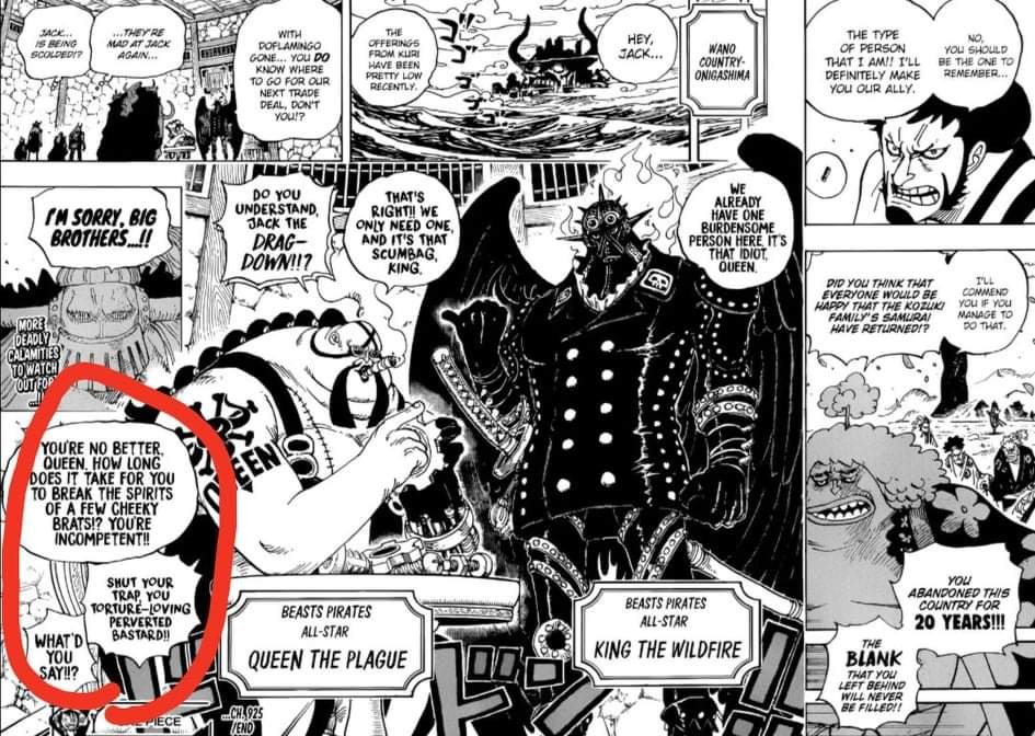Lastly I think queen is the perfect opponent for sanji to unlock this haki against. Queen is a character completely lacking of empathy. He is responsible for breaking down wills in udon prison through torture.