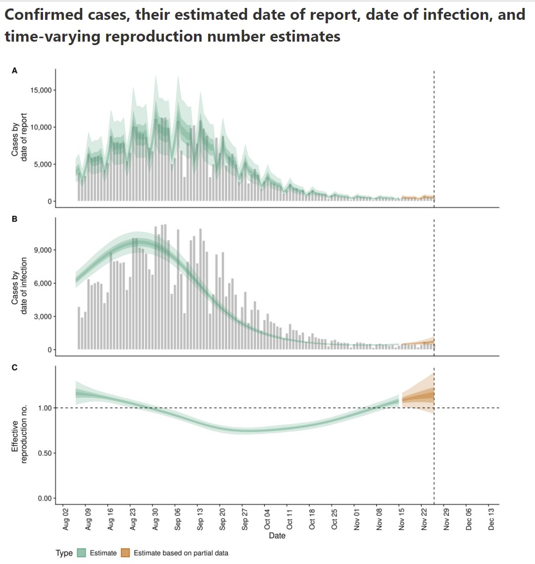 Example of ineffective approach discussed above (ban travel, when variant is already clearly locally established & Rt>1):
