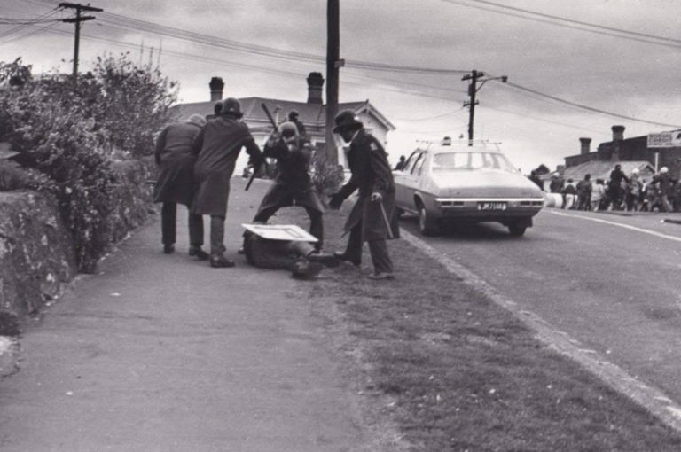 1/4 I'm sorry to hear that Jimmy O'Dea has died at the age of 86. Even if you haven't heard of O'Dea, you've probably seen him. This famous photo shows him being beaten by cops outside Eden Park during the Springbok Tour of 1981. O'Dea's was a life of protest.